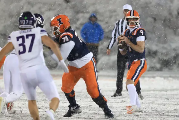 CHAMPAIGN — No. 9 said goodbye Saturday night with the thing that seemed to matter most to him: walking off Zuppke Field with a victory. Luke Altmyer's 18th the past two seasons. "It was just a fun moment out there," the one-time Mississippi quarterback said from the warm confines of the Smith Center late Saturday night.