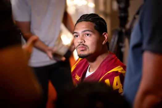 Jayden Maiava is a standout collegiate quarterback known for his size, accuracy, and dual-threat play. He began his career at UNLV, where as a redshirt freshman he led the Rebels to their most wins since 1984, threw for over 3,000 yards with 17 touchdowns, earned Mountain West Freshman of the Year, and set the league record with five Mountain West Freshman of the Week honors. He was also named College Football Network Freshman Quarterback of the Year and earned All-Mountain West Second Team honors. After transferring to USC, Maiava took over as the Trojans’ starting QB late in 2024 and in 2025 led the Big Ten in passing yards (3,431), yards per game, yards per completion, and total offense, while ranking No. 1 nationally in total QBR. He was named a finalist for the 2025 Polynesian College Football Player of the Year Award and selected to the 2025 Davey O’Brien National Quarterback Award Class.